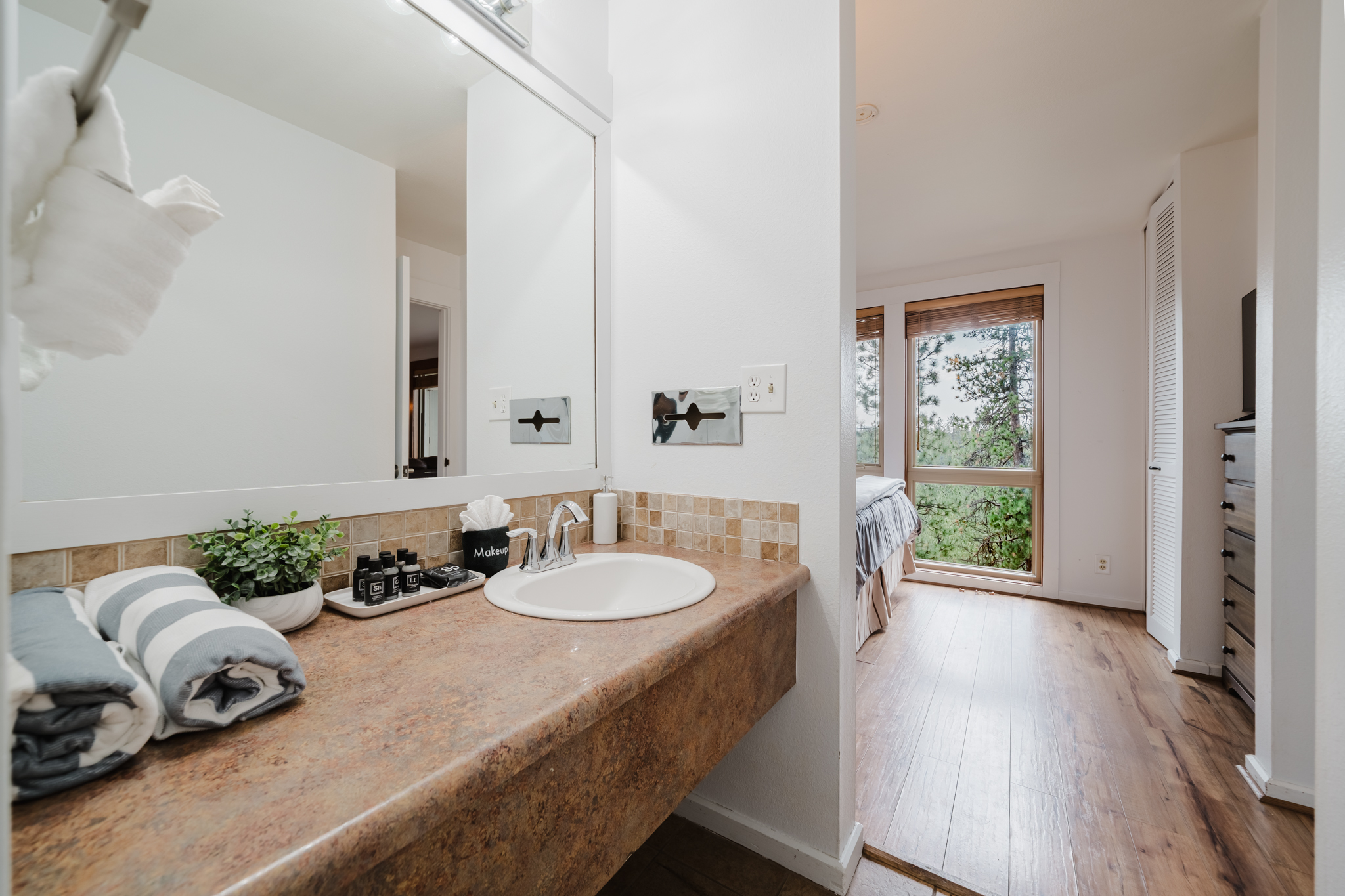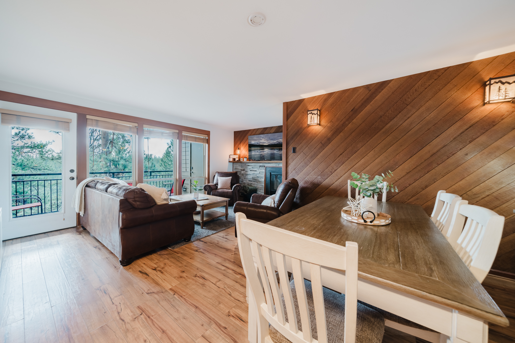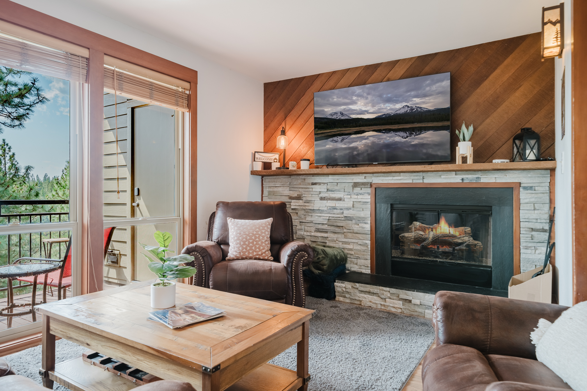 Just minutes from Mt. Bachelor, this fully furnished STR-approved condo is the perfect mountain retreat, vacation rental, or full-time home. Enjoy warm rustic finishes, a cozy fireplace, an updated kitchen, and a private deck with peaceful forest views. The resort offers year-round amenities including heated pools, hot tub, sauna, fitness center, tennis & pickleball courts, ice skating, mini golf, on-site dining, and direct access to the Deschutes River Trail. HOA dues cover utilities, exterior maintenance, insurance, and all resort amenities—making ownership easy and stress-free.