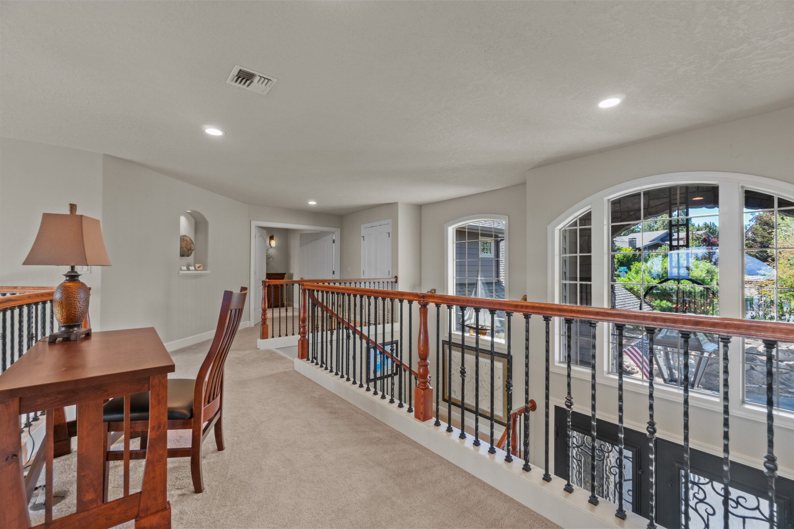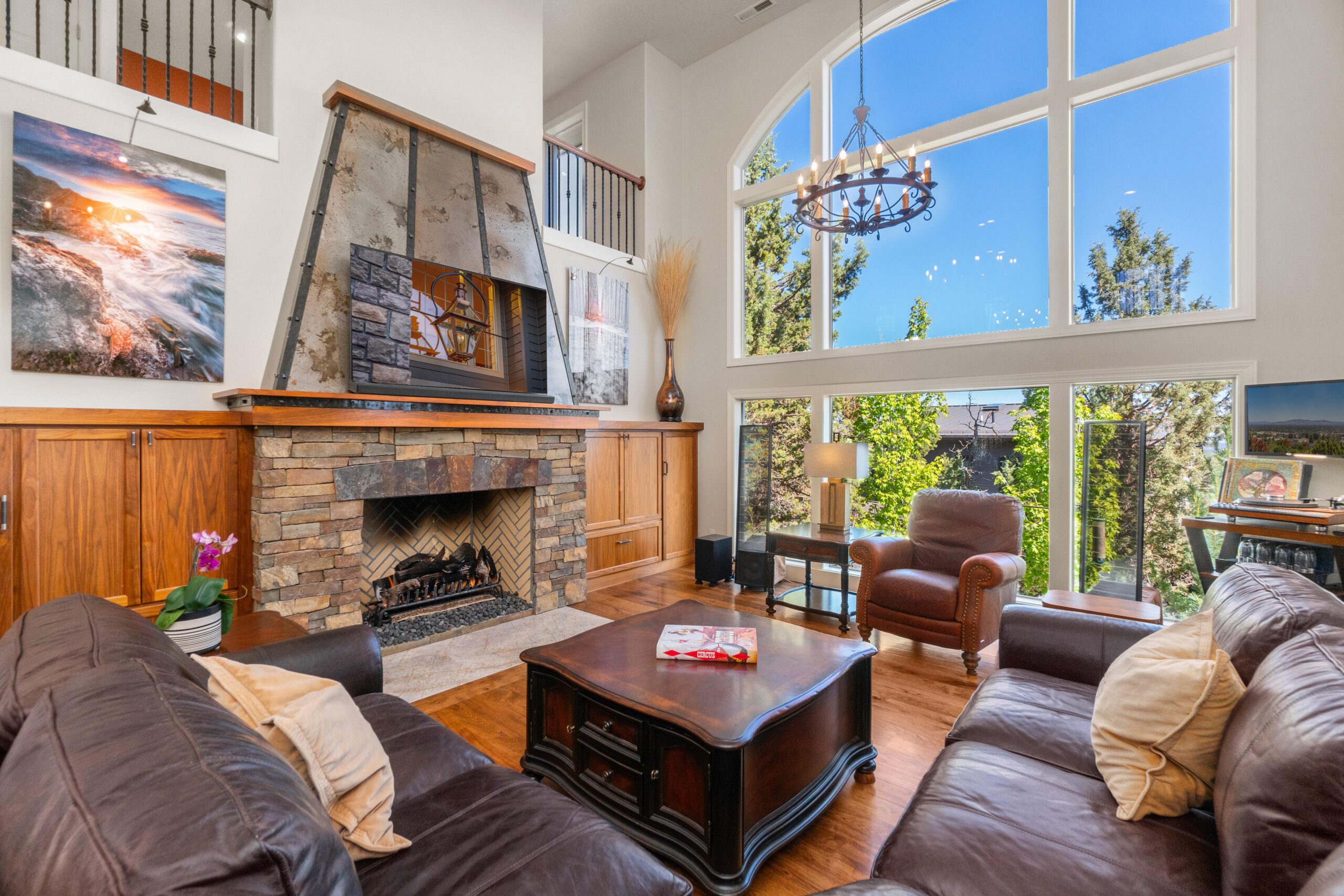 Marquee Coastal French inspired Custom in Rivers Edge. Open Flame Chandeliers and a Massive Ornamental Steel Door set the tone for this Elegant Home. Open Concept Great Room with an18 ft Wall of Windows and Opulent Grand Fireplace. Hickory Hardwoods and Five Balconies compliment an All En Suite Design offering Commanding Territorial Views from Three Finger Jack and Mt. Jefferson to Smith Rock and Pilot Butte. Expansive Kitchen features a Rare Brazilian Stone Island and Luxury Appliances from Wolf, Kitchen Aid, Dacor and Perlick. A phenomenal list of amenities, unmatched on the Butte, include a Solid Mahogany Pub with Antique Hand Carved Accents, a Secret Door, an Odorless Cigar Ventilation System, a Gym and a Custom Copper Bar with Brass Triple Taps. A complete Live Away Remodel in 2020 added many incredible amenities renewing every corner of this fascinating abode inside and out at an overall cost of $700k. New roof & HVAC in ’23. This one of a kind home is meticulous in every way!