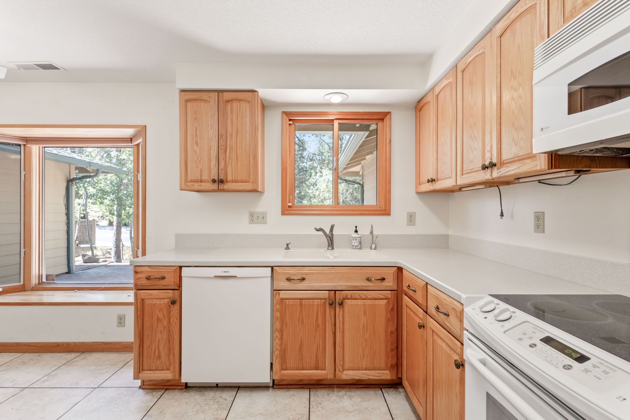 Tucked into a peaceful, tree-lined setting, this charming 3-bedroom, 2-bathroom single-level home offers 1,842 sqft of comfortable living in a tranquil Westside Bend location. Lovingly maintained by the same owner for over 40 years, this rare gem sits on a mature, beautifully wooded lot—something you don’t see often in Bend. A long driveway welcomes you to a classic ranch-style home with great curb appeal and a spacious front yard. Inside, enjoy a bright, open living area with laminate flooring, a cozy wood stove on a brick hearth, and large windows framing forest views. The kitchen and dining flow seamlessly for easy entertaining. Step outside to a private, park-like backyard—perfect for relaxing under the pines or gathering with friends. With direct access to trails, parks, and the river, this home blends privacy, nature, and convenience in one unbeatable package.