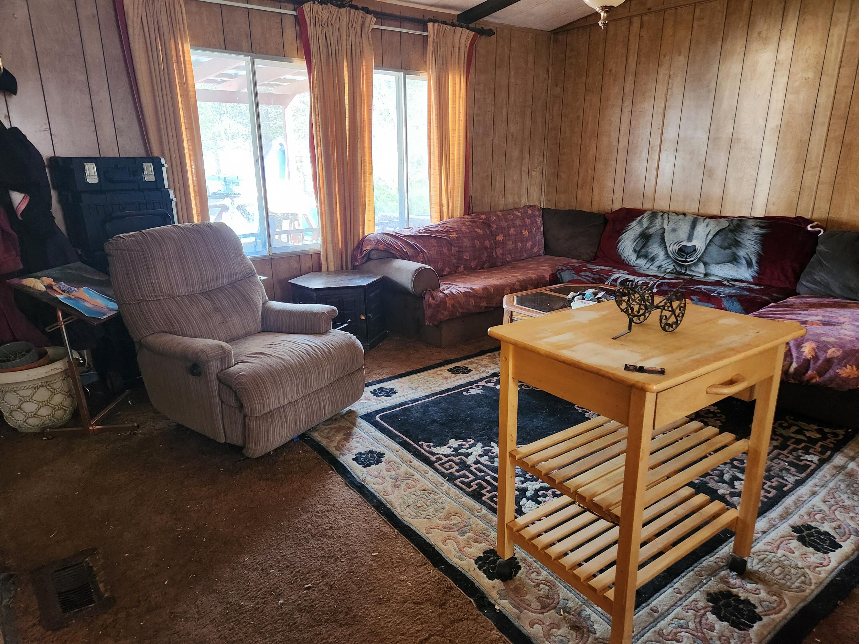 3/2 manufactured home with amenities that just needs some TLC. The back bedroom flooded and needs remodeling. Otherwise, the rest of the home appears to be in good shape. Nice open floor plan. The property does have two very old, manufactured homes that the county has deemed storage. Numerous sheds. Pump house. There is a shared with the neighbor in the back. The owner is selling As Is. He will not be able to do any repairs. He will not be able to clean up the debris.